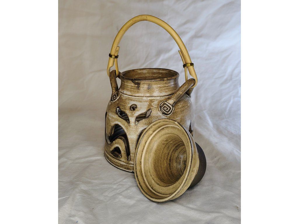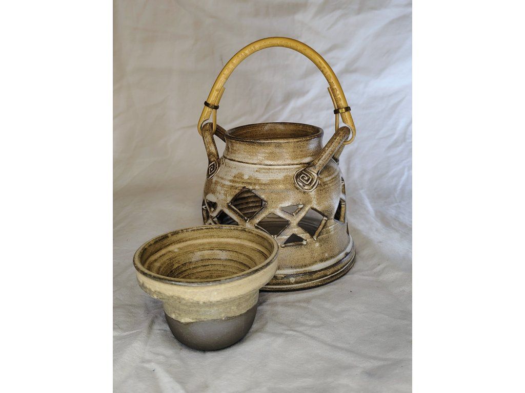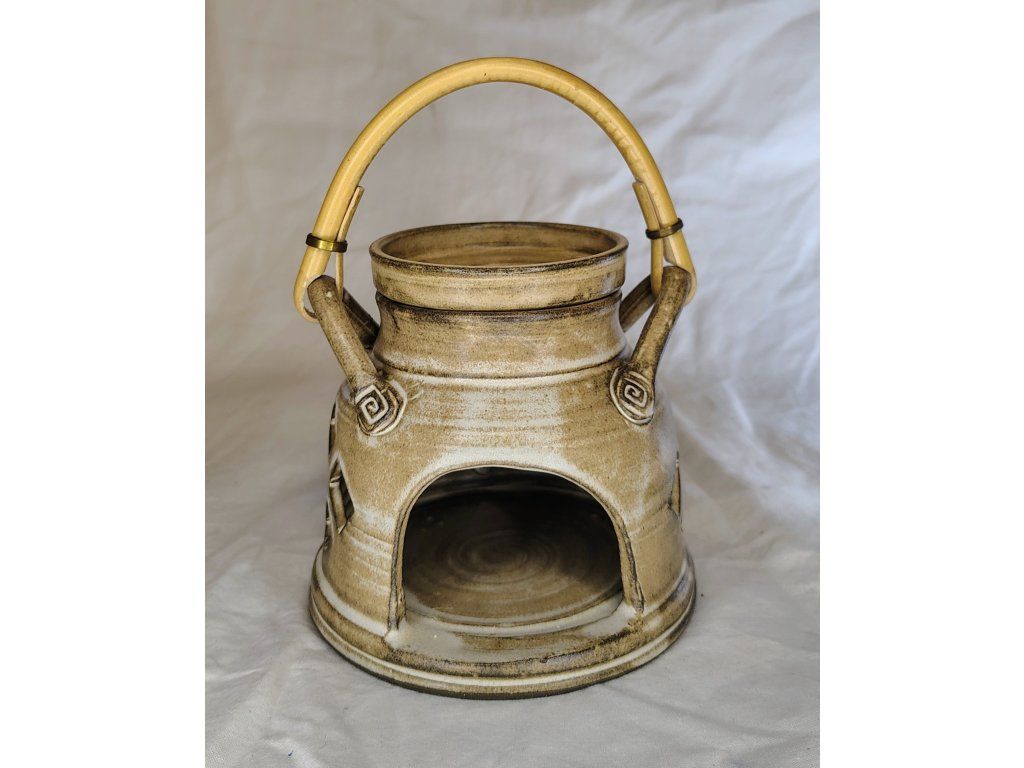 Proměňte svůj domov v oázu klidu. Tato unikátní keramická aromalampa kombinuje syrovou krásu pálené hlíny s hřejivým detailem přírodního bambusu. Její jemné výřezy ve tvaru květu nejsou jen na ozdobu – při zapálení čajové svíčky rozehrají v místnosti uklidňující hru světel a stínů.