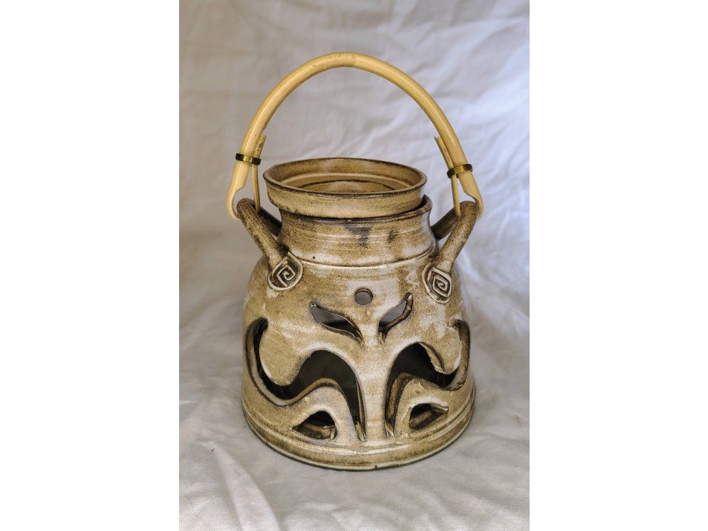 Proměňte svůj domov v oázu klidu. Tato unikátní keramická aromalampa kombinuje syrovou krásu pálené hlíny s hřejivým detailem přírodního bambusu. Její jemné výřezy ve tvaru květu nejsou jen na ozdobu – při zapálení čajové svíčky rozehrají v místnosti uklidňující hru světel a stínů.