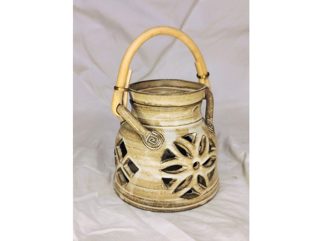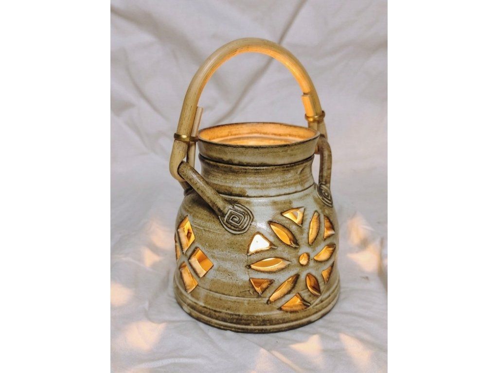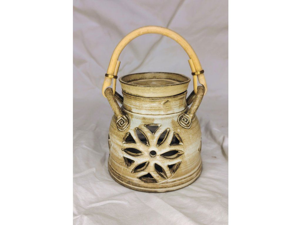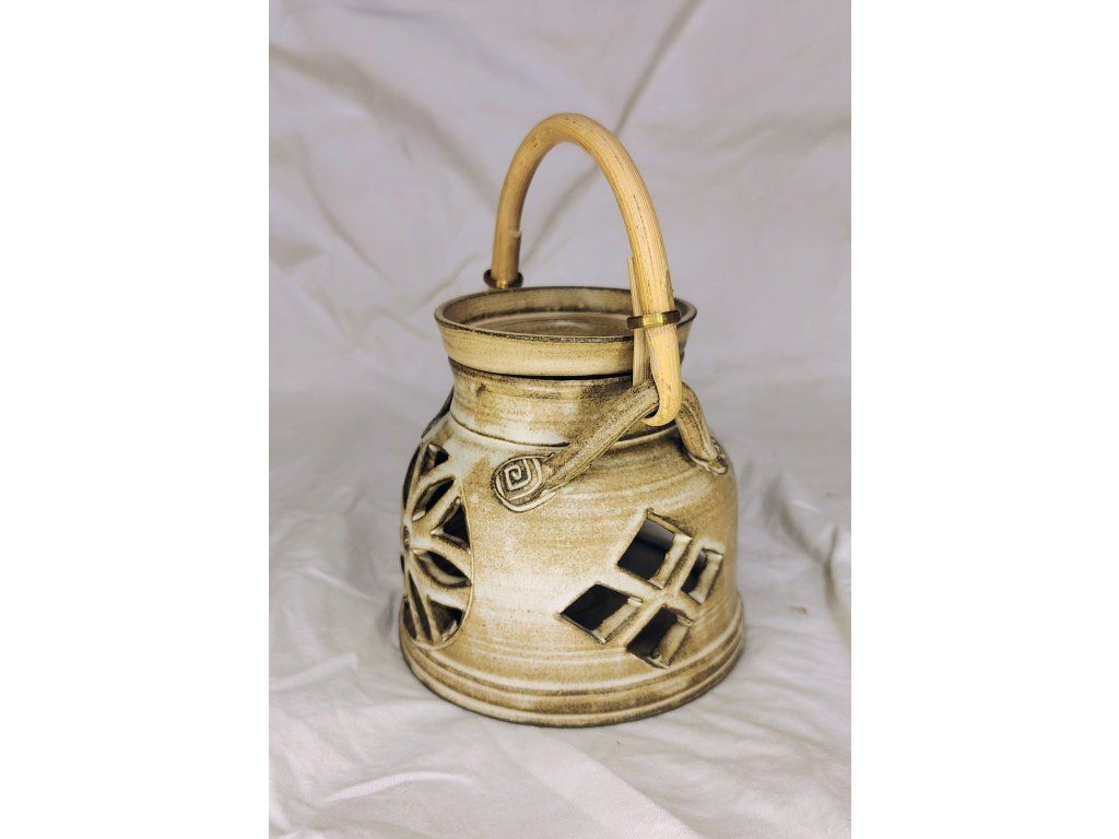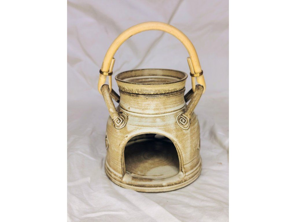 Ručně točená keramická aromalampa s bambusovým uchem