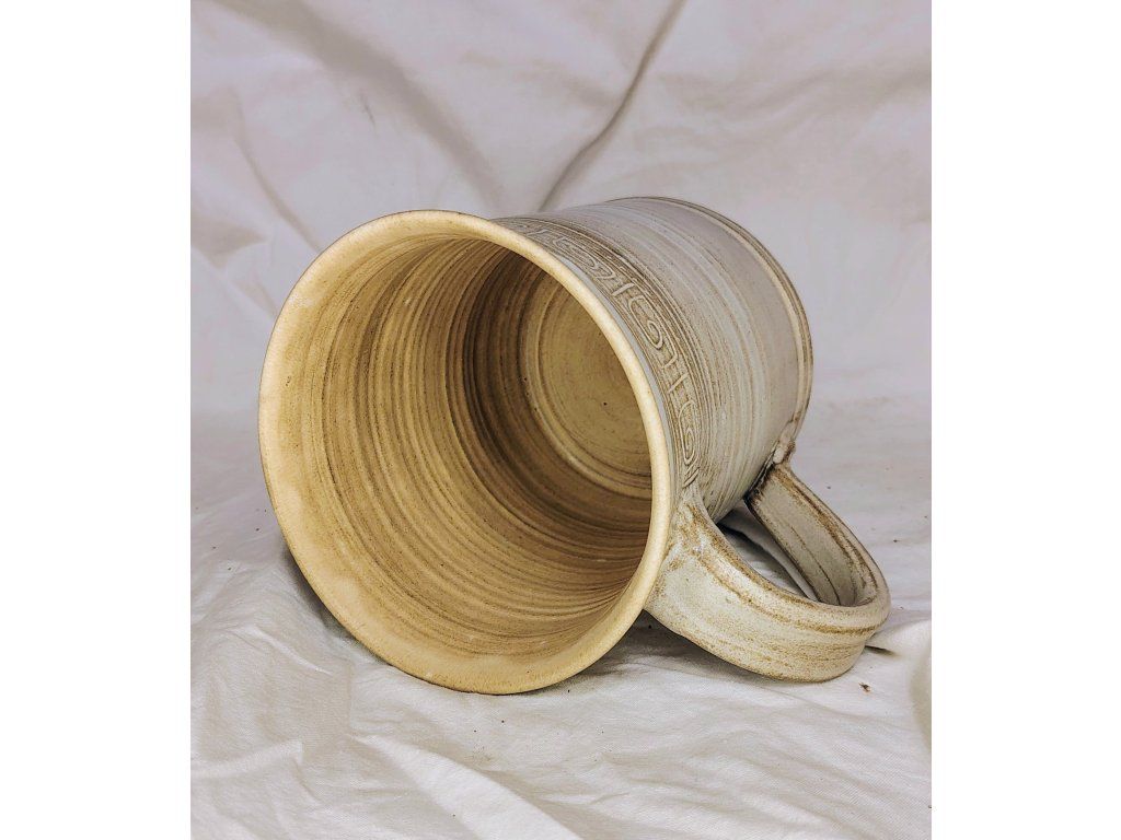 Estetika přírody: Jemné horizontální linky a přirozené stékání glazury podtrhují autenticitu materiálu.