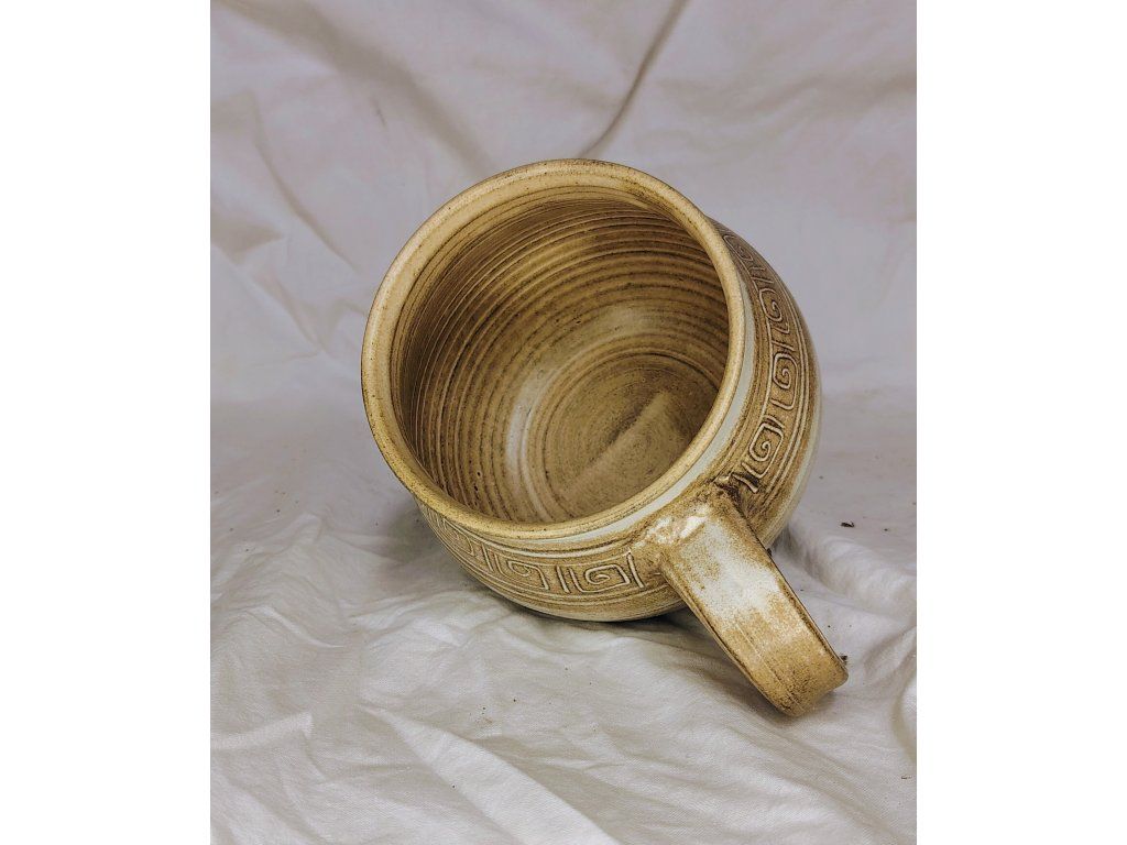 Poctivý, ručně vyráběný keramický hrnek s charakteristickým „buclatým“ tvarem. Přírodní barevnost v tónech slonové kosti a hnědé hlíny skvěle zapadne do rustikálních i moderních interiérů.