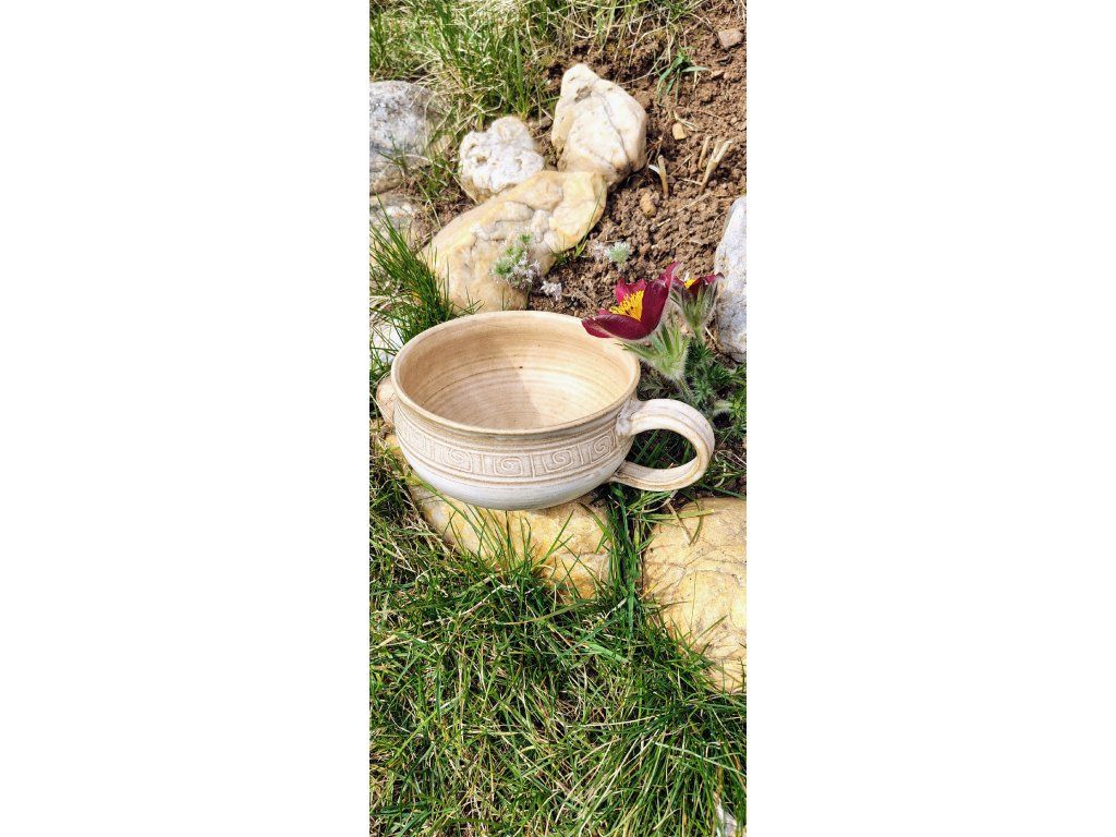 - Hledáte kousek, který v sobě spojuje estetiku a funkčnost? Tato keramická miska s uchem je výsledkem poctivé ruční práce. Světlý, přírodní vzhled s jemnou patinou podtrhuje jedinečnost každého kusu – žádné dvě misky nejsou díky ručnímu zdobení úplně stejné.